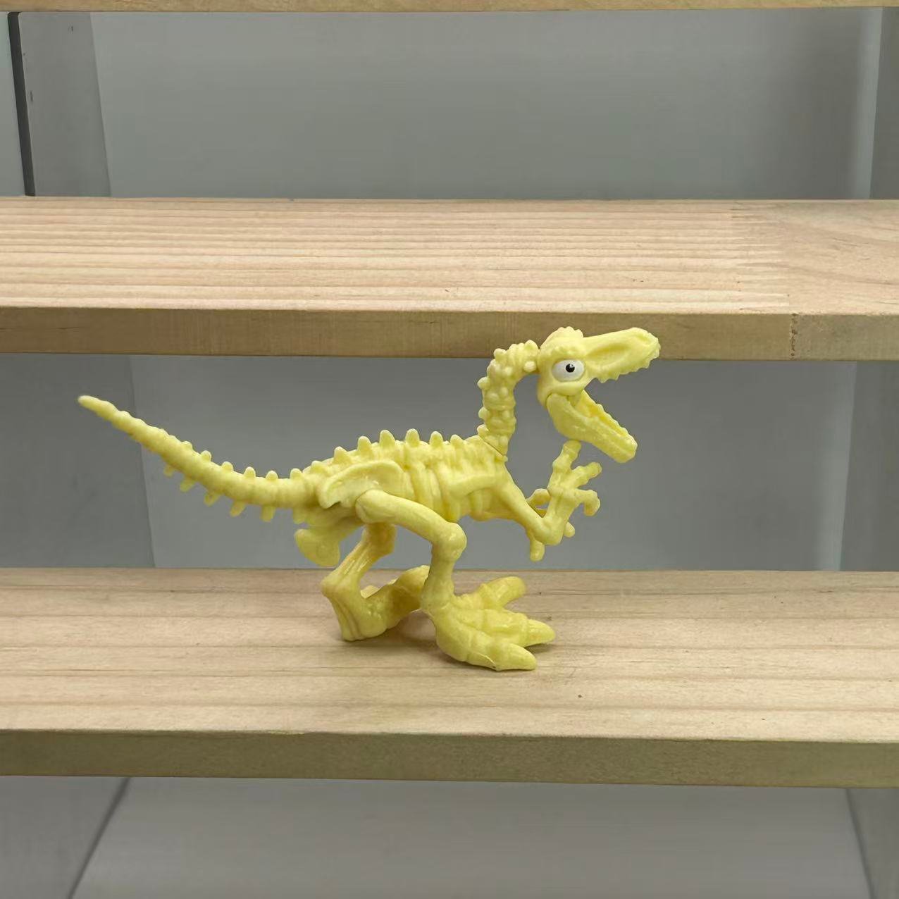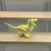 This Raptor features a bold **Yellow** color scheme for its bones, giving it a unique, radioactive or amber-fossilized look. The sculpting captures the sleek, deadly frame of the predator, including the famous “sickle claw” on its foot and the sharp teeth. Because it is glued, the dynamic, running pose is permanently preserved, ensuring it looks fast and dangerous even when standing still on your shelf.